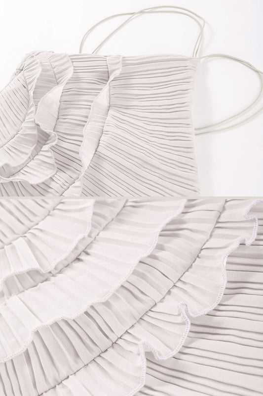 İNDİRİM 32%Fırfır Detaylı Pileli Halter Midi Abiye Elbise