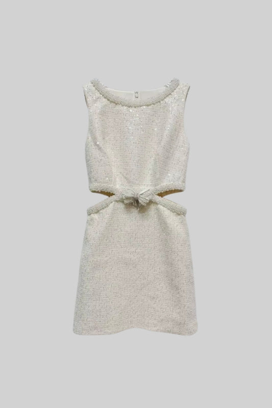 Bel Kesimli ve Fiyonklu Payetli Kolsuz Mini Elbise