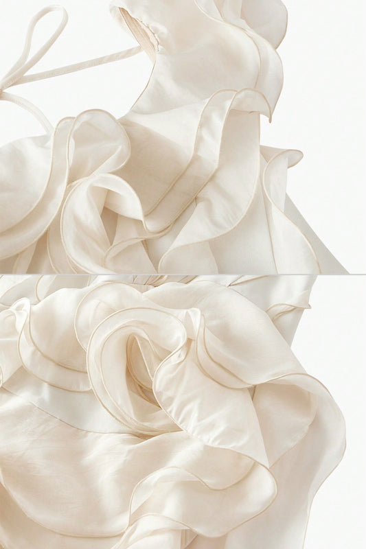 İNDİRİM 12%Halter Askılı Sırt Fırfırlı Elbise