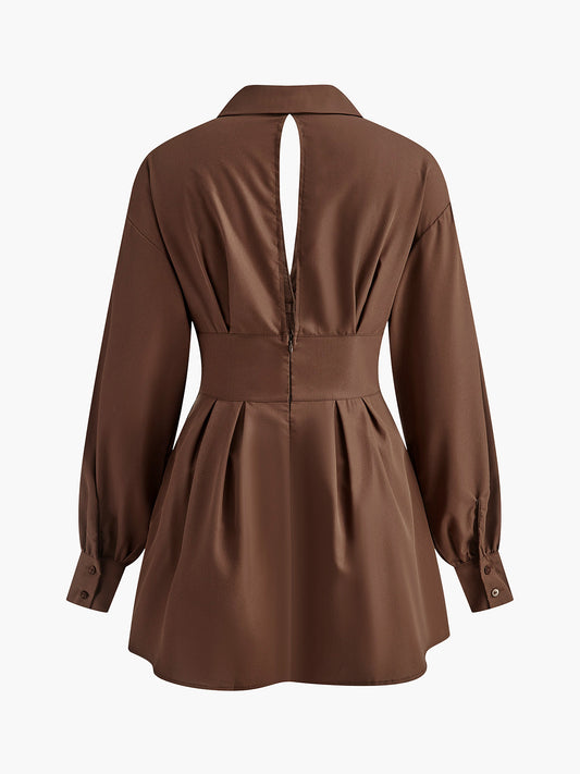 İNDİRİM 63%Pamuk Sırtı Açık Düğmeli Kısa Elbise