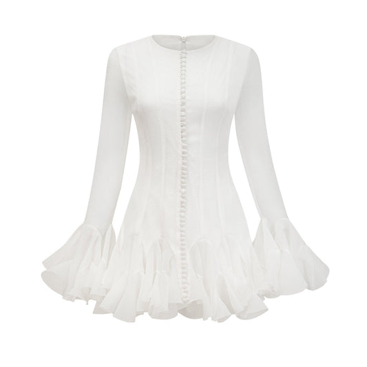 İNDİRİM 3%Aurora Fırfır Detaylı Beyaz Mini Elbise
