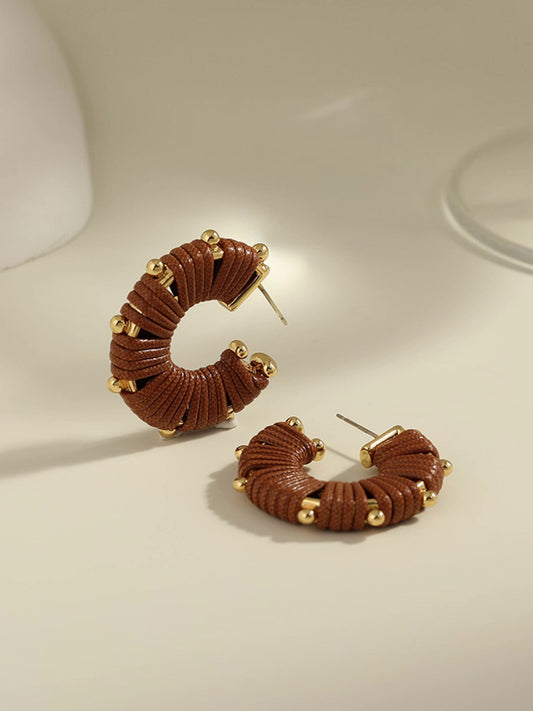 Leopar Desenli C-Şekil Stud Halka Küpeler