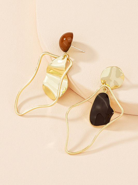 Şık Asimetrik Ahşap ve Metal Damla Küpe