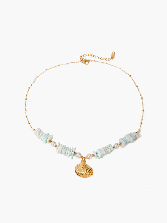İNDİRİM 45%Mint Yeşili İnci Kabuklu Kolye