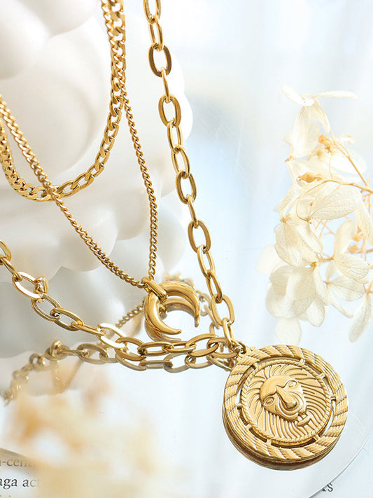 İNDİRİM 46%Katmanlı Ay Aslanı Daire Kolye Kolye