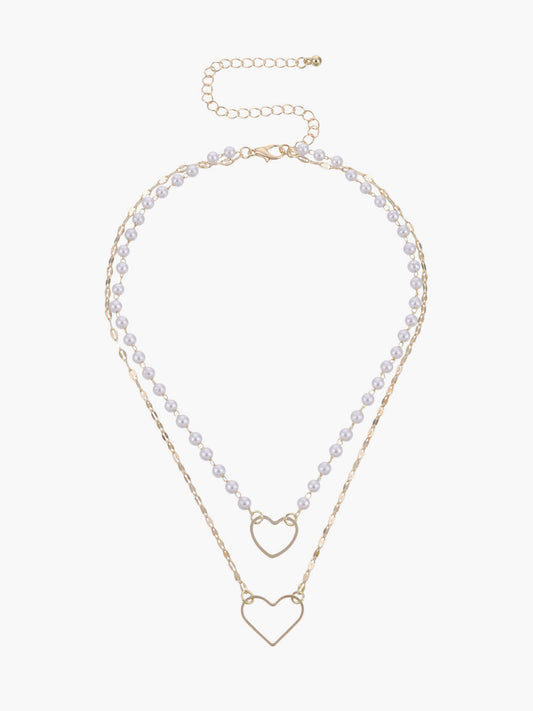 İNDİRİM 45%Çift Katmanlı İnci Kalp Kolye