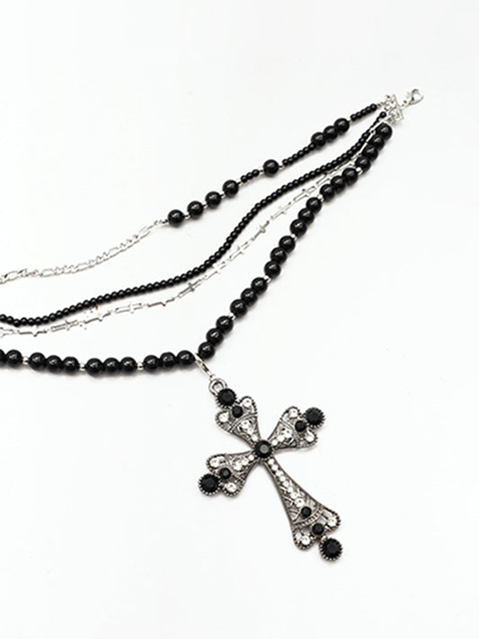 İNDİRİM 45%Cadılar Bayramı Yığmalı Kristal Taşlı Haç Kolye