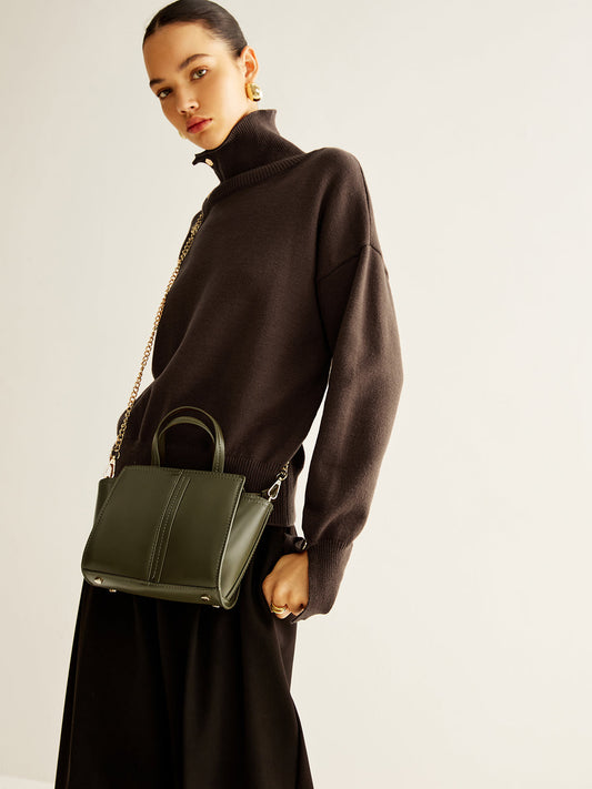 Doku Görünümlü Kemerli Kapaklı El Çantası