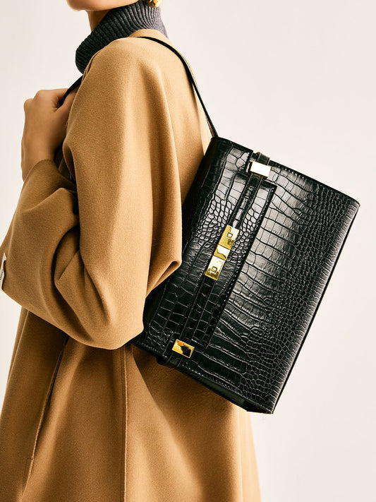 Timsah Desenli Büyük Kapasiteli El Çantası