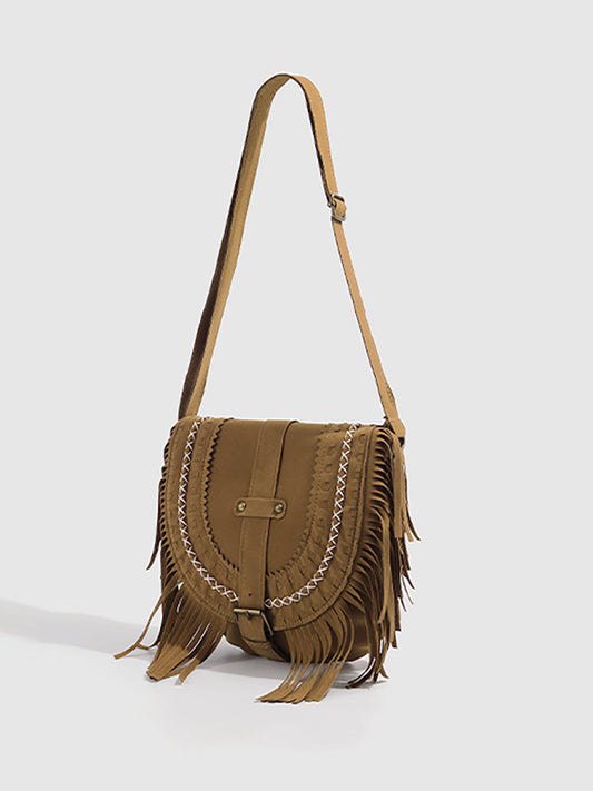 Retro Tokalı ve Fermuarlı Hilal Çanta