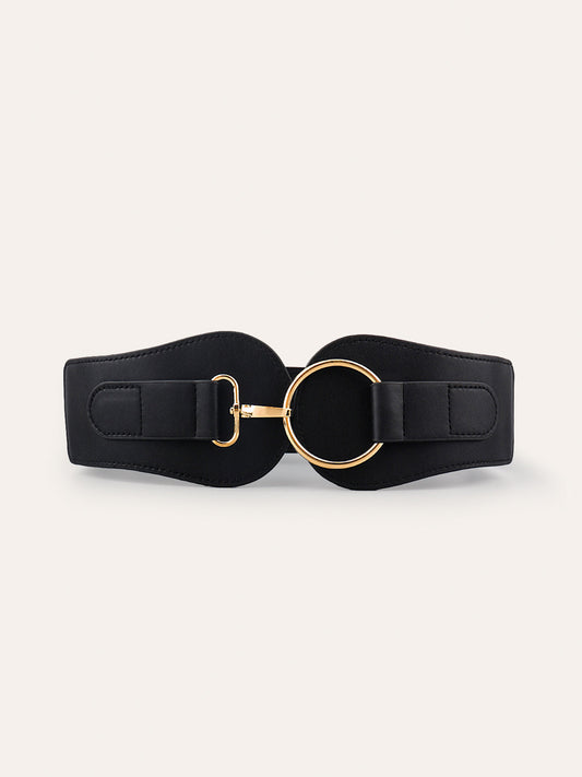 Lüks geniş sahte deri kemer altın yuvarlak tokalı