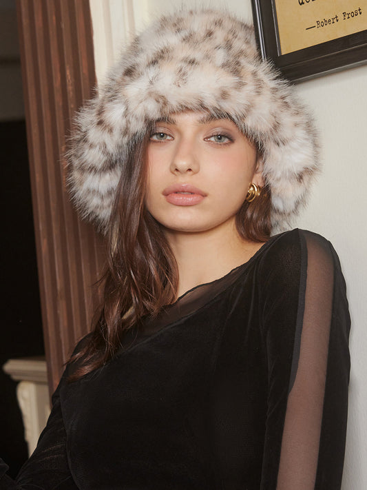 Şık Leopar Desenli Peluş Kova Şapka ile Tarz ve Rahatlık İçin En Üst Seviye