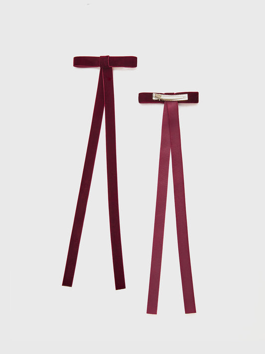 İNDİRİM 46%Şık Kadife Fiyonklı Saç Klipsi Seti - 2 Parça
