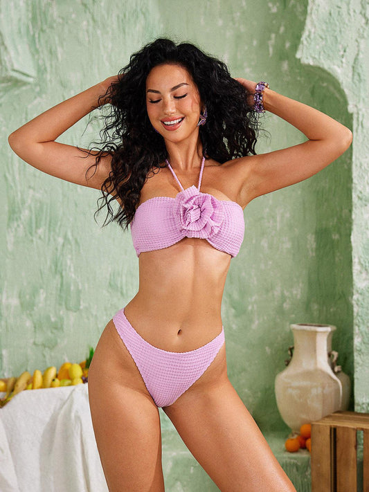 İNDİRİM 43%Jojo Gofre Çiçek Bikini Üç Parçalı Takım