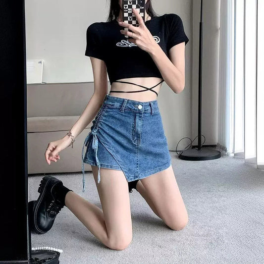 İNDİRİM 43%Bağcıklı Asimetrik Kot Etek