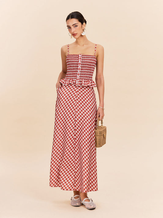 Şık Kareli Fırfırlı Etek ve Şık Kemeri - Mükemmel Bel Ortası Uyumu!