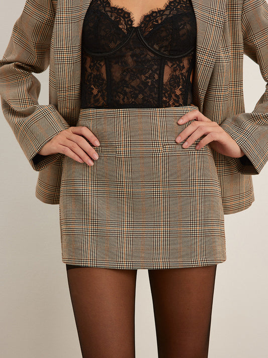 İNDİRİM 39%Şık Orta Bel A-Line Etek Şık Kare Desenli