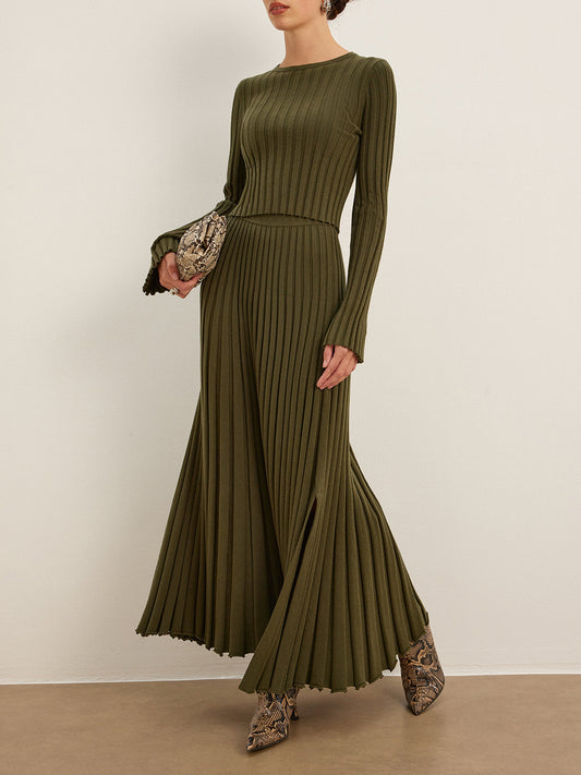 İNDİRİM 38%Şık Plise Kazak Etek Taze Marul Yeşili'nde