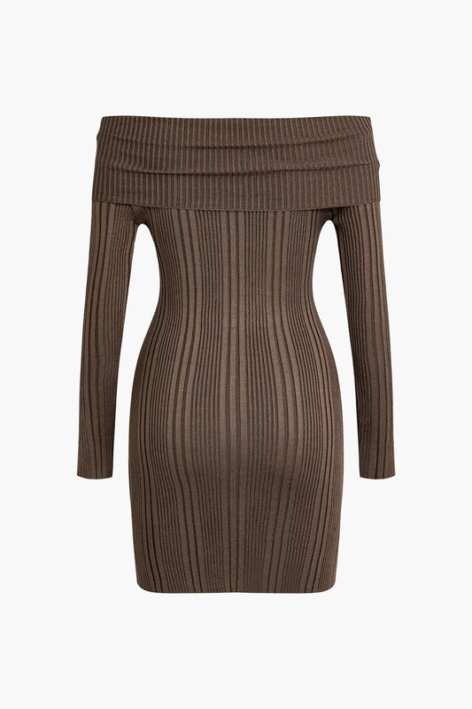 İNDİRİM 31%Basic Off-Shoulder Bodycon Sweater Elbise