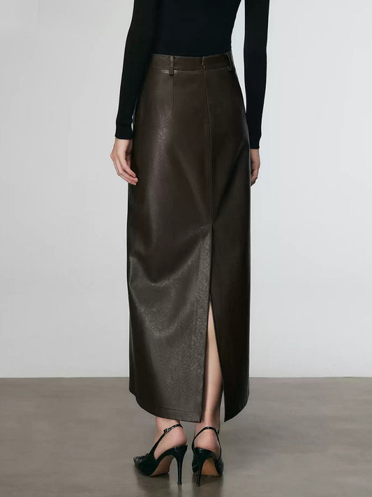 İNDİRİM 38%Suni Deri Parçalı Midi Etek
