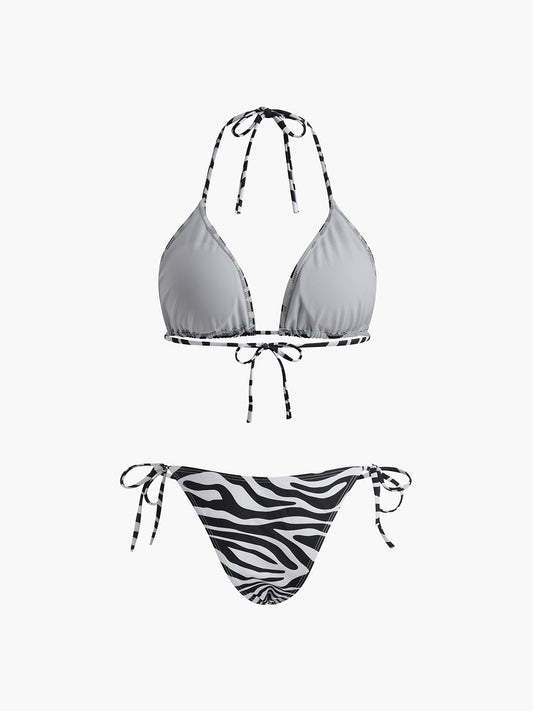 İNDİRİM 66%Zebra Çizgili Üçgen Bikini Takımı