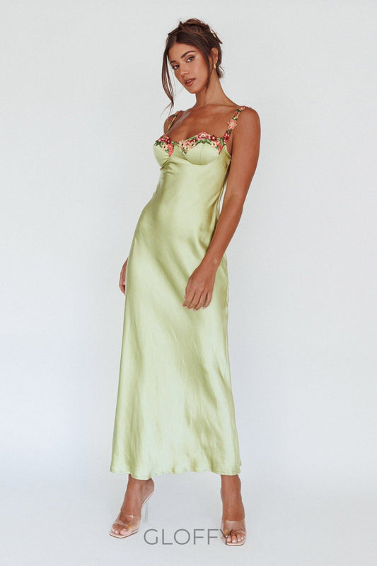 İNDİRİM 35%Zemira İşlemeli Saten Maxi Elbise