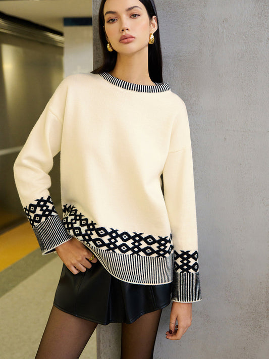 İNDİRİM 61%Zıt Geometrik Desenli Kazak