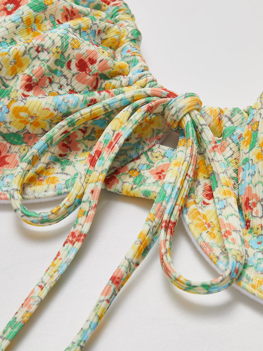 İNDİRİM 65%Çiçek Desenli Önden Bağlamalı Bikini Takımı
