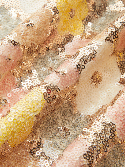 Çiçek Detaylı Göz Alıcı Siyah Pullu Maksi Elbise