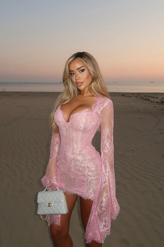 İNDİRİM 28%Allık Fısıltıları Dantel Çan Kollu Mini Elbise