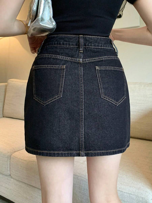İNDİRİM 35%Doğal Dokulu Günlük Kot Etek