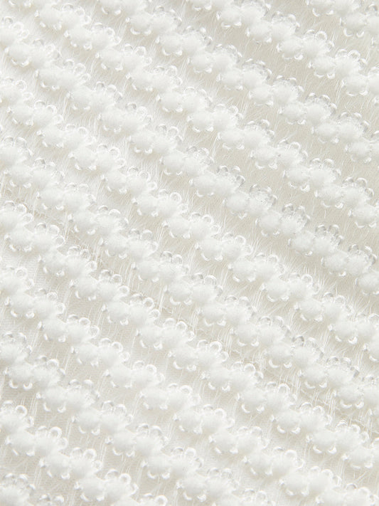 File Üstlü ve İnci Süslemeli Zarif Mini Elbise- Beyaz