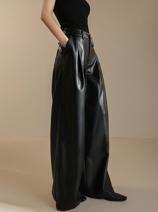 İNDİRİM 33%Geniş Paça Deri Palazzo Pantolon
