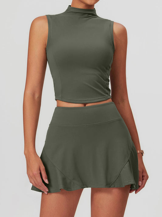 Yırtmaçlı Cepli Kolsuz Etek Takım