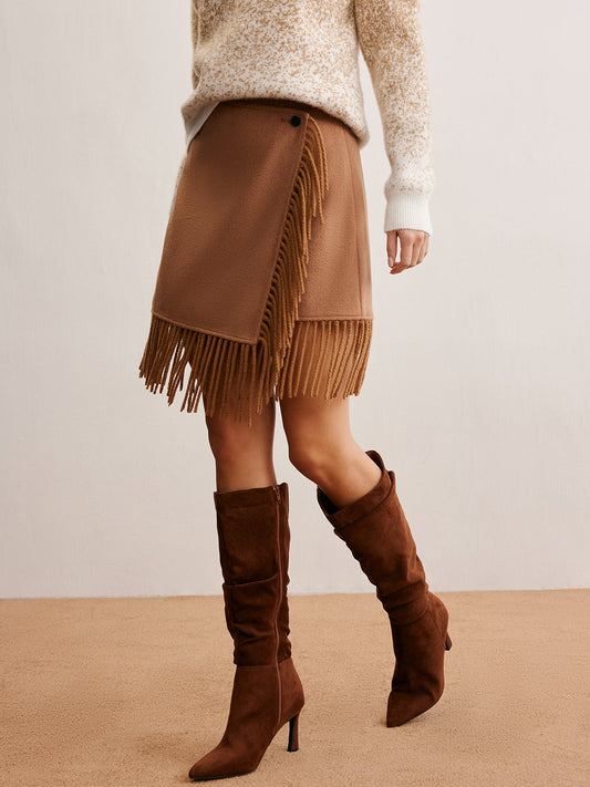 Yün Karışımı Düğmeli Fırfır Mini Etek