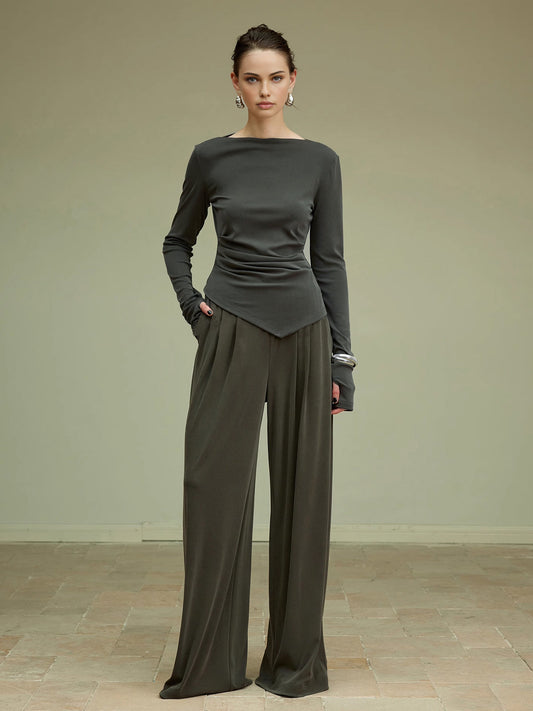 İNDİRİM 46%Asimetrik İnce Jarse Bluz