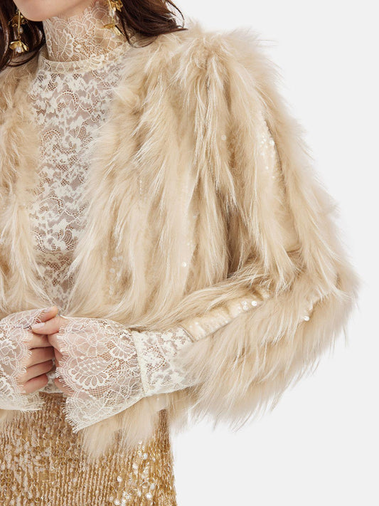 İNDİRİM 50%Tüy Detaylı Işıltılı Ceket