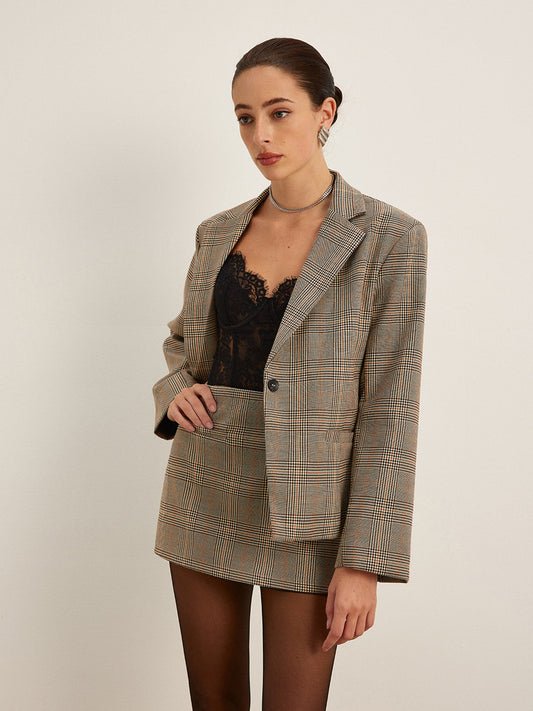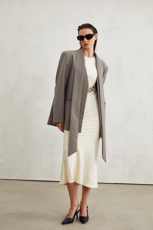 İNDİRİM 25%Béatrice Gri Yakasız V Yaka Blazer Ceket