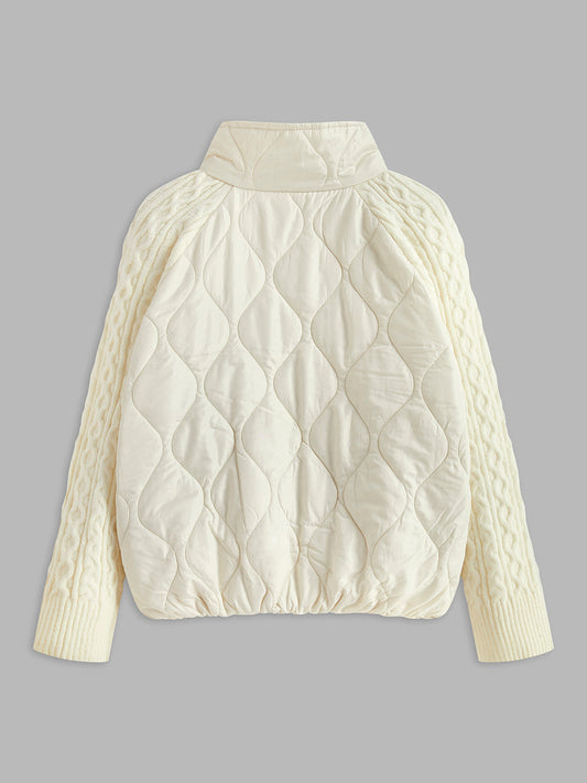 İNDİRİM 31%Button Padded Stand Collar Long Sleeve Mont