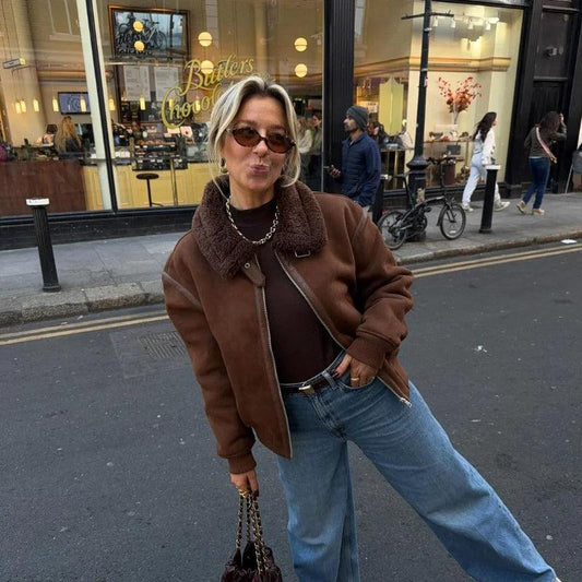 İNDİRİM 35%Vintage Kahve Kuzu Yünü Yaka Ceket