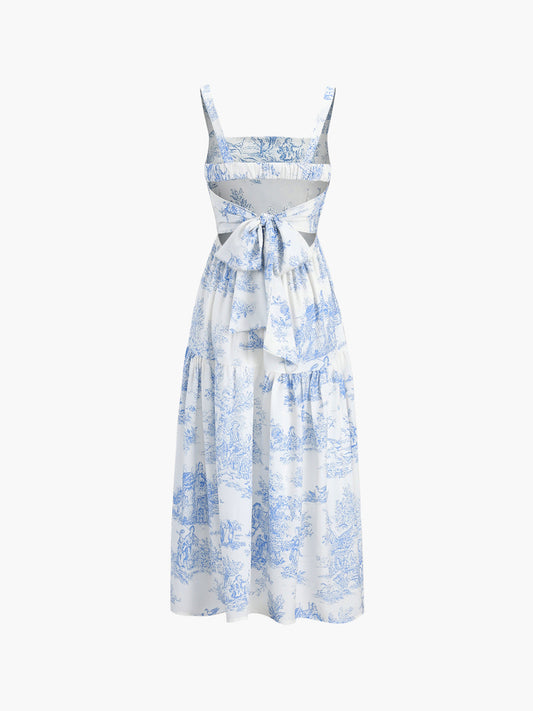 İNDİRİM 53%Deniz Organizması Desenli Sırtı Açık Uzun Elbise
