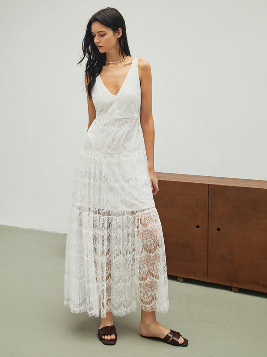 İNDİRİM 53%Dantel Çift Kat Uzun Elbise