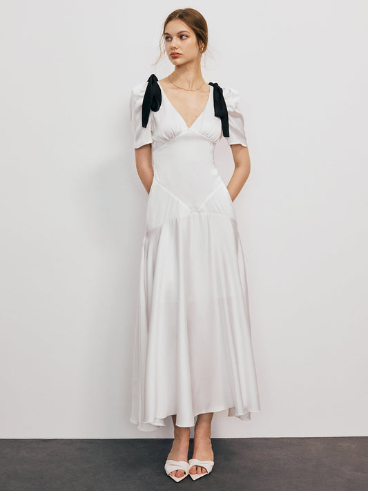 İNDİRİM 38%Çiçek İpli V Yaka Uzun Elbise