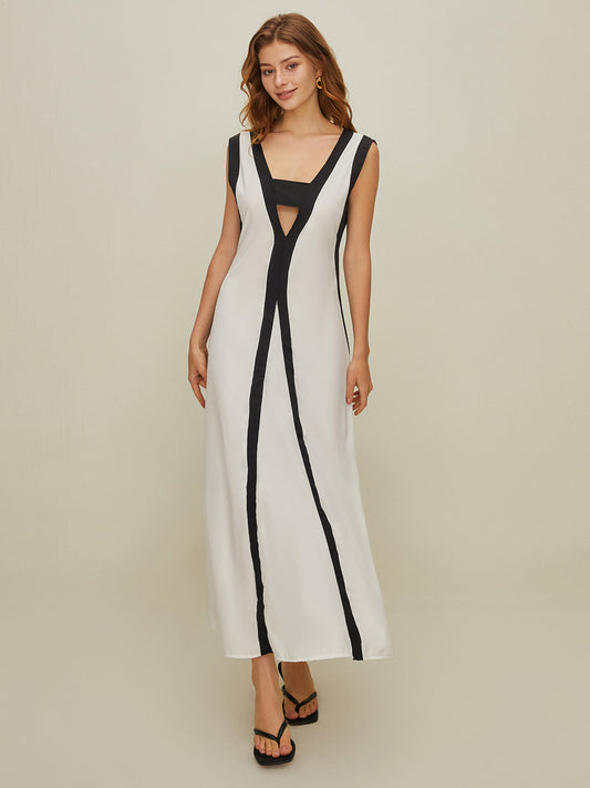 İNDİRİM 38%Colorblock Cutout Uzun Elbise