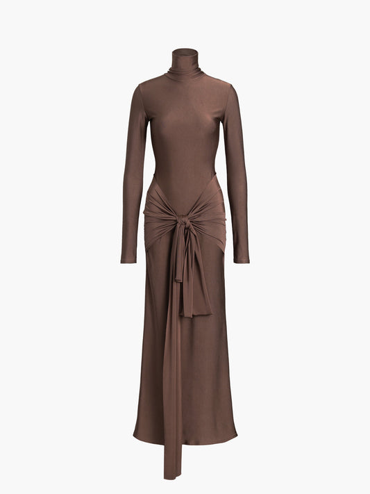 Drapeli Balıkçı Yaka Düşük Bel Bükümlü Uzun Elbise
