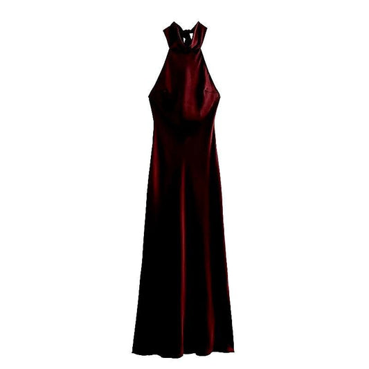 İNDİRİM 41%Zarif Halter Saten Sırtı Açık Maksi Elbise