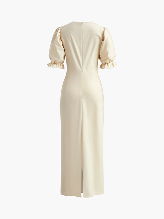 İNDİRİM 35%Sırtı Yırtmaçlı Puf Kollu Abiye Uzun Elbise