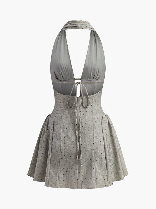 Şık Sırt Bağlamalı Sırt Dekolteli Plise Abiye Elbise
