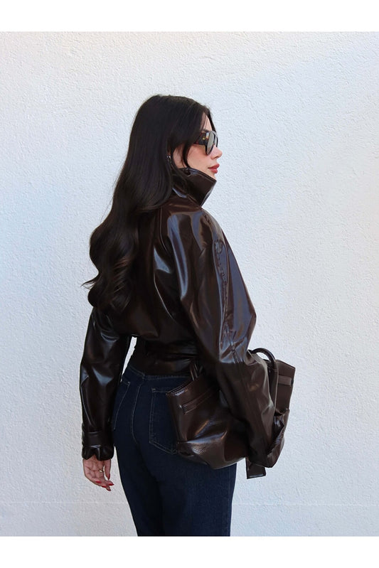 İNDİRİM 30%Belden Bağlamalı Rugan Ceket