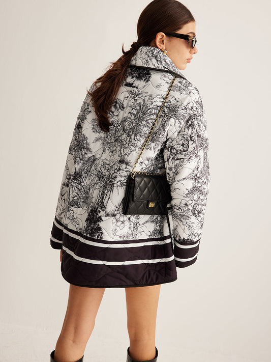 İNDİRİM 27%Desenli Kuşaklı Oversize Mont